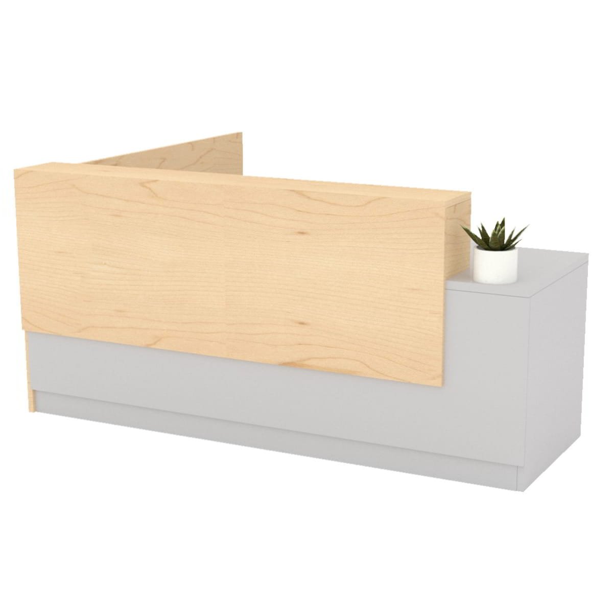 Recepción moderna, que brinda elegancia y funcionalidad, para que cada visitante tenga la mejor experiencia y tú empresa trasmita confianza y profesionalismo. Cuenta con un área de servicio, un área de trabajo y un archivador con chapa de seguridad que permite almacenar documentos y otros objetos importantes. Combinación de colores según elección y disponibilidad.